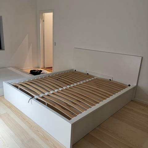 Sengen har løftemekanisme, der giver adgang til opbevaringsrum under lamelbunden, velegnet til opbevaring af sengetøj, tæpper eller andre tekstiler. Designet er enkelt og neutralt, så sengen kan passe ind i forskellige soveværelsesindretninger.