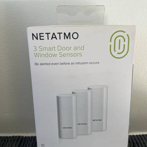 Netatmo smart dør- og vinduessensorer i hvid. Sættet består af tre trådløse sensorer, der kan monteres på døre og vinduer for at registrere åbning og lukning. Sensorerne er beregnet til brug sammen med kompatible Netatmo-enheder og -apps til overvågning af hjemmet. Velegnet til indendørs brug på almindelige dør- og vinduesrammer.