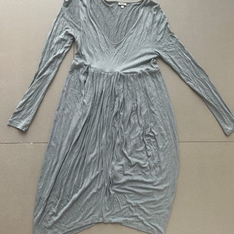Noa Noa hverdagskjole i grå viskose i størrelse S. Kjolen har lange ærmer og V-udskæring foran. Den er fremstillet i 100 % viskose, som giver et let og blødt fald. Velegnet som hverdagskjole til daglig brug eller afslappede anledninger.