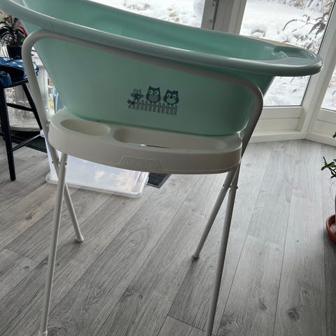 OK Baby badestol til baby i plast i beige farve. Badestolen har høj ryg og sider, der giver støtte omkring barnet under badning. Indvendigt er der en forhøjning mellem benene, som hjælper barnet med at sidde stabilt. Sædet har skridsikre felter i bunden. Der er integrerede håndtag/åbninger i siderne, så stolen er nem at løfte og flytte. Fremstillet i hård plast og egnet til brug i badekar eller brusekabine til mindre børn/babyer under opsyn af voksen.