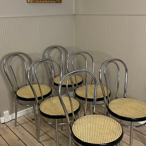 Vintage spisebordsstole / cafesæt i forkromet stål og granit bordplade