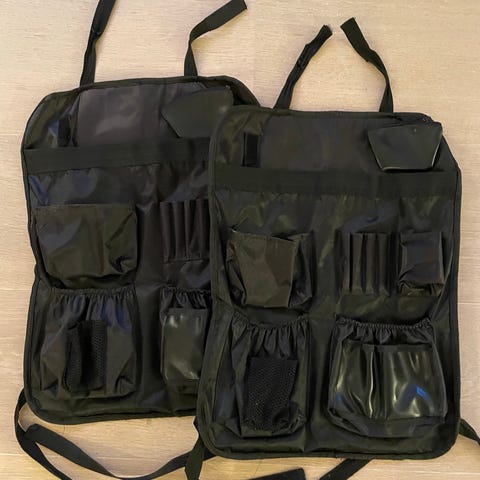 Diono bilryglæns-organizer i sort. Sættet består af to ryglæns-organizere til montering på forsædernes bagside. Ryglæns-organizerne har flere lommer i forskellige størrelser til opbevaring af mindre genstande. De fastgøres med stropper foroven og forneden.