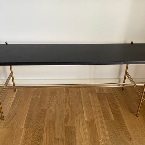 Gubi TS konsolbord med to hylder med marmor plader og messing stel.