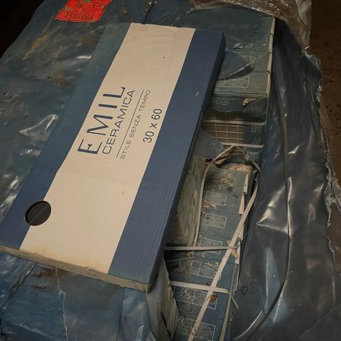 Vådrum til både gulve og vægge. Naturlook. 6 kvm (i 6 uåbnede pakker). Tåler gulvvarme.