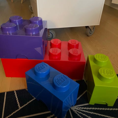 Klodserne kan stables og bruges til opbevaring af fx LEGO klodser, legetøj eller andre småting. Alle dele er fremstillet i hård plast og er designet til indendørs brug. Alle kasser har aftageligt låg.