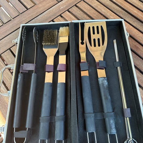 Grillsaks med sort håndtag. Saksen har buet, takket klinge og ergonomisk greb, der giver god kontrol ved klipning. Velegnet til brug ved grill og madlavning, f.eks. til at klippe kød, fjerkræ eller andre råvarer. Leveres med låsemekanisme ved håndtaget for sikker opbevaring.