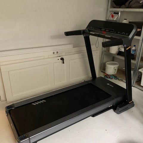 Løbebåndet har en bred løbeflade egnet til gang og løb indendørs. Konsollen giver mulighed for visning af træningsdata som tid, distance og hastighed samt tilslutning til tablet via holder over displayet. Modellen kan klappes sammen for pladsbesparende opbevaring og har transporthjul, så den er nem at flytte rundt. Velegnet til hjemmetræning med justerbare træningsprogrammer og sikkerhedsstop-nøgle på frontbøjlen.