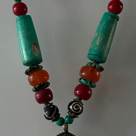 Yndigt, unikt halssmykke / kæde med mosaik vedhæng- Tibetansk / Nepal