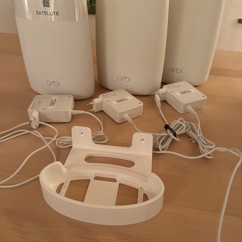 router sæt. Trådløst router-system med hovedenhed og satellit til hjemme- eller kontornetværk. Enhederne har flere ethernet-porte på bagsiden til kablede forbindelser samt WAN-port til internettilslutning. Stabil og hurtig, høj sikkerhed.