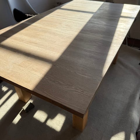 - Vandmærke fra vase (ikke forsøgt fjernet, tænker det er lige til at slibe af)