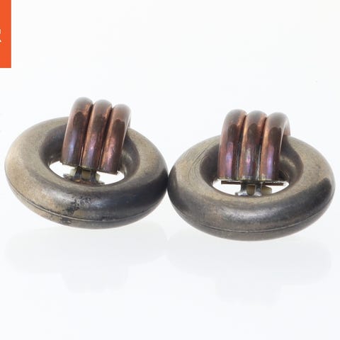 Vibtage øreringe 1950/60 til kvinde iØreringene er udformet som blomster med lag af gennemsigtig plast og en facetteret sten i midten. Modellen har klips-lukning bagpå, så de kan bæres uden huller i ørerne. Velegnet som accessories til både hverdag og festlige lejligheder.