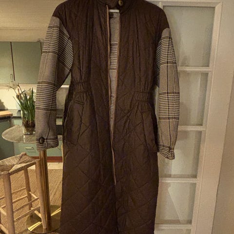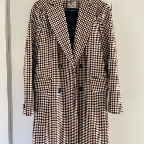 Smuk og stilren sort frakke fra Baum und Pferdgarten. Klassisk snit med knaplukning, let A-form og bindebånd i taljen.