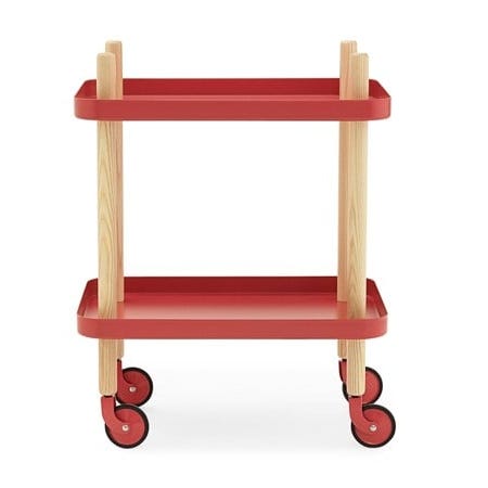 Normann Copenhagen Block rullebord er et lille bord på hjul med to bakker i hvidlakeret stål og ben i ask.