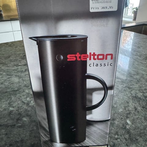 Stelton termokande i metal med træhåndtag. Kanden har et cylindrisk design med sort låg og hældetud. Velegnet til servering af varme drikke som kaffe eller te. Kan bruges i køkken, på spisebord eller kontor, hvor der er behov for at holde drikke varme i længere tid.