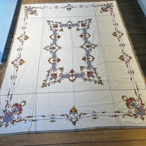 Gl svensk håndsyet broderet STOR dug , Vintage,