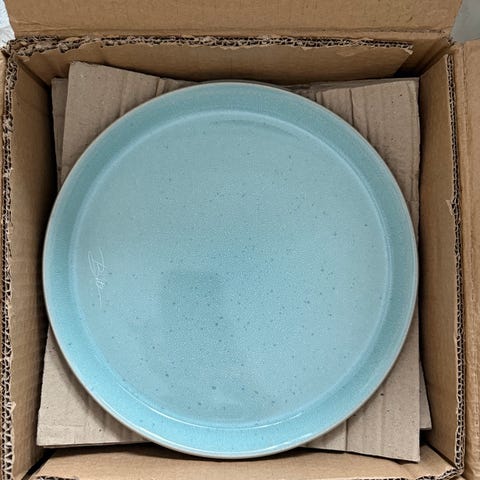 Christian Bitz tallerken i sort keramik med stænk-mønster. Tallerkenen har en diameter på ca. 40cm, målt med målebånd på billederne. Undersiden har en lys cirkel med signatur og små dutter til beskyttelse af overfladen. Velegnet som middagstallerken eller serveringsfad i køkken og spisestue.