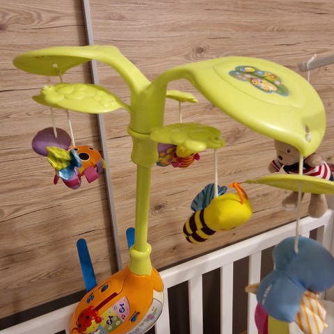 Sælger elektrisk baby uro til tremmeseng.