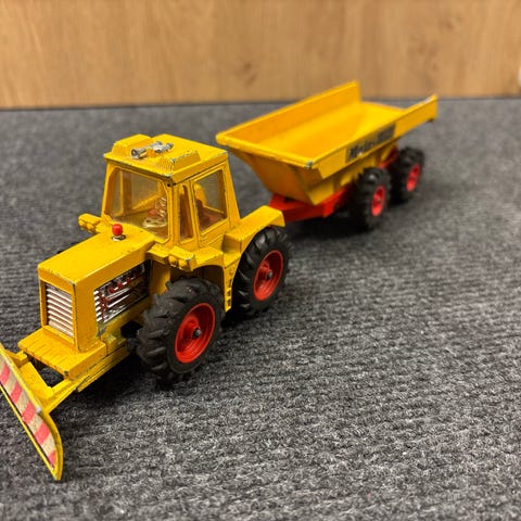 John Deere Model G legetraktor i lille skala. Traktoren er udført i grøn med gule hjul og er fremstillet i metal med plastdetaljer. Egnet som samlerobjekt eller som lille legetraktor. Længden fremgår af billedet med tommestok til sammenligning.