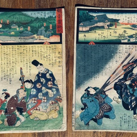 Denne sjældne udgave indeholder bind 61 og 62 (både øverste og nederste dele) og udgør en vigtig del af denne episke fortællingsserie, udgivet i Meiji 4 (1871).