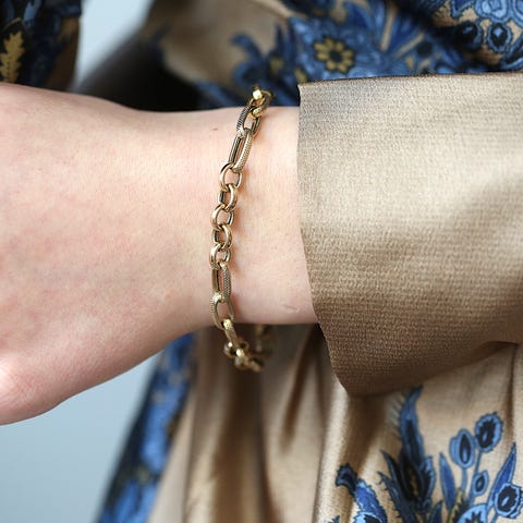 Ny armbånd til kvinder i 18 karat guld med turkiser, længde 18,7 cm, vægt 8,38 g, 24 turkise perler (6–6,5 mm) og 11 gyldne kugler, lås Oliv i 18K guld. Klik på den blå "gå til varen" knap, for at købe eller byde på denne vare. Den samlede pris vil blive vist inden du afgiver dit bud.