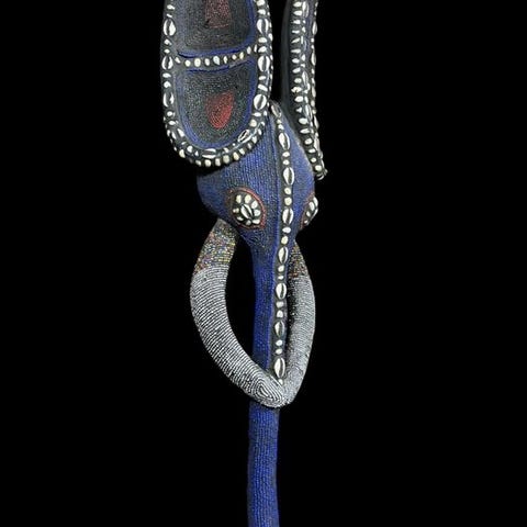 Kran-elefanmasken fra Côte d’Ivoire, træ, 37 cm høj og 15 cm bred, ca. 1,15 kg, dateret 1900–2000, i god stand med mindre alderspletter. Klik på den blå "gå til varen" knap, for at købe eller byde på denne vare. Den samlede pris vil blive vist inden du afgiver dit bud.
