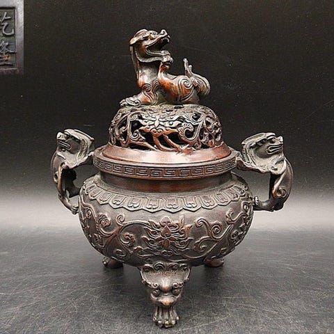 Røgelsesbrænder - Cast copper incense burner with a lion-picking design, made...
