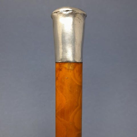 Denne gåstav har et T-formet håndtag af hjortegevir udstyret med en skjult stålproptrækker. Håndtaget kan skrues af og på uden besvær, hvilket afslører proptrækkermekanismen, som ser ud til at være ægte og funktionsdygtig. Sådanne kombinationsstave var populære herremandstilbehør i mellemkrigstiden og forenede praktisk anvendelighed med diskret nyskabelse.