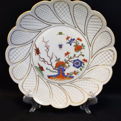 Meget sjældent og flot tysk berømt Meissen-familie- og roseporcelænsplade fra det tidlige 1900-tal! Der er Meissen blå dobbeltsværdssignatur i bunden! Standeren er ikke inkluderet!