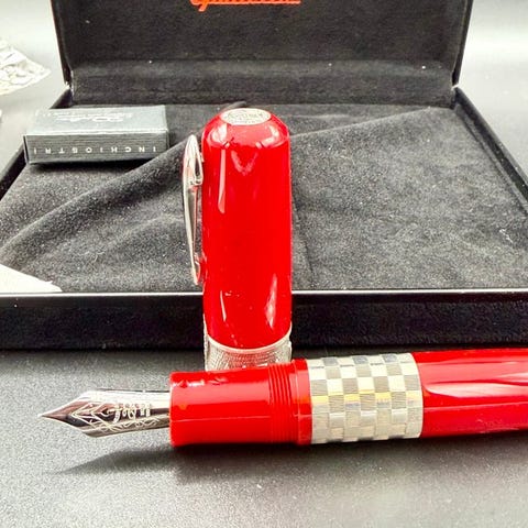 en fyldepen, lukket, 11,8 cm, med skaft og låg (indeholder Ducati-emblem i krombelagt stål), skruemodul i rustfrit stål,