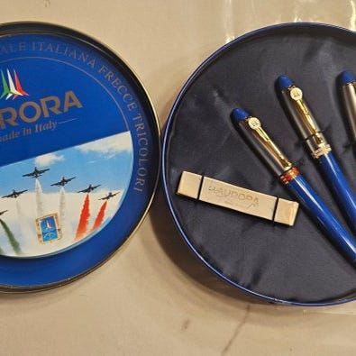 Sæt af fire ægte Ducati-skriveinstrumenter fra Italien, produceret 2000–2010 i rustfrit stål, bestående af en rullepind (lukket 13,5 cm), en fyldepen (lukket 11,8 cm), en kuglepen (11,8 cm), et penalhus og et sort læder vertikalt sedel-/kreditkortholder; alle genstande er Ducati-licenserede og i fremragende brugt tilstand med mindre slitage, rullepennen skal have ny refill, men original refill inkluderet, serienummer EU-AQG-BW0Z5ME660. Klik på den blå "gå til varen" knap, for at købe eller byde på denne vare. Den samlede pris vil blive vist inden du afgiver dit bud.
