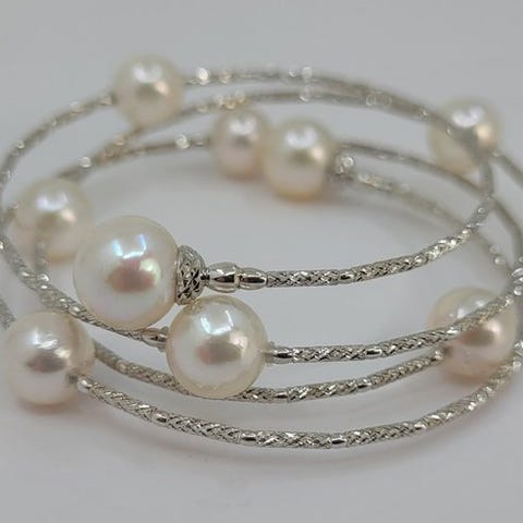 Armbånd 8,5x9mm lyse Akoya-perler