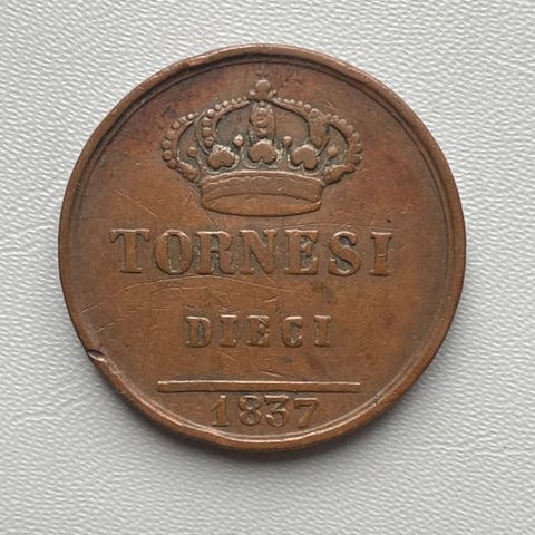 Italien, Kongeriget af begge Sicilier Ferdinando II di Borbone. 10 Tornesi 1838