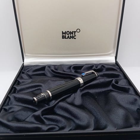 Montblanc Meisterstuck 142-G fyldepen, fremstillet i Tyskland i midten af det 20. århundrede, lavet af ædelharpiks med en totonet oblique bred 14K (585) nib, Ø 12 mm og 126 mm lang (kapslet), tretrins teleskopisk liggende fyldning, celluloid kapsel og krop, dyb amber blek vindue, i fremragende stand og restaureret med ny kork tætning. Klik på den blå "gå til varen" knap, for at købe eller byde på denne vare. Den samlede pris vil blive vist inden du afgiver dit bud.