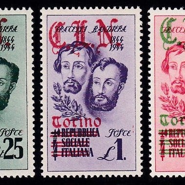 Italien 1945 - CLN - Torino. Ødelagte monumenter, 14 overtrykte værdier. De h...