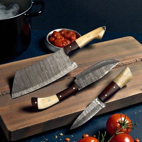 Set of THREE, Hand-Forged with Old & Twisted Steel, Japanese Style Knives fro...