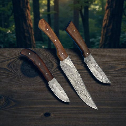 I popular efterspørgsel vender vi tilbage: Genlanserer vores eksklusive mønstervridede stålknive – håndlavet i USA! Kære værdsatte kunder, Vi er begejstrede for at bringe disse imponerende mønstervridede stålknive tilbage på grund af overvældende forespørgsler fra vores elskede fællesskab! Specielt udformet til dem, der værdsætter antik æstetik, vintagesjæl og autentisk brugt/slidt karakter—disse knive har smukke vridede og lagdelte mønstre, der vækker historisk håndværk. Lavet lige her i USA blander hver kniv traditionelle smedeteknikker med højtydende kanter (ved brug af premium-stål som Shirogami-inspirerede høj-kulstofkerner til enestående skarphed og holdbarhed, typisk hærdet til 52–58 HRC). Perfekt for samlere, køkkenentusiaster der værdsætter arveagtige stykker, eller udendørs eventyrere der søger unikke fortællende værktøjer. Det