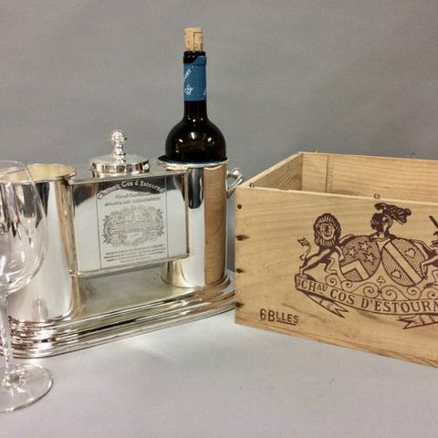 Sølvbelagt vinkøler til 2 flasker med isbeholder i midten.