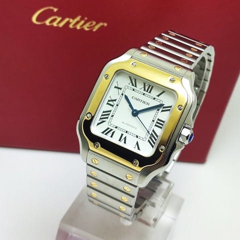 Meget klassisk, eksklusiv og prestigefyldt model. Slående og iøjnefaldende. Fra Cartier, luksus- og high-end urmærke, mest ikoniske serie Santos.