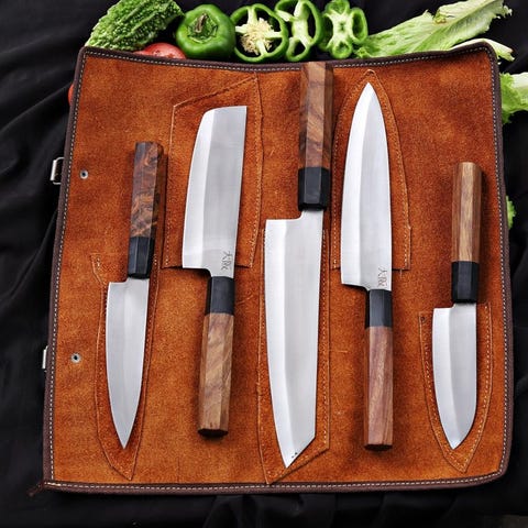 Japanese Style Kitchen Knife SET With Leather BAG Included - Køkkenkniv - Kit...