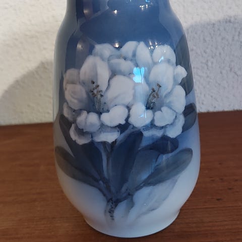 Royal Copenhagen hvid riflet vase 30 cm og lille rund vase i porcelæn