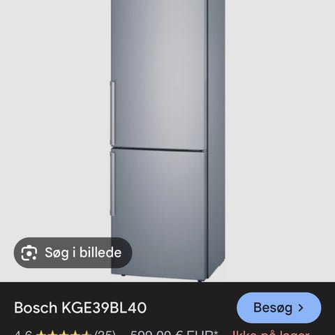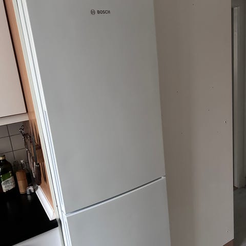 Bosch køle-fryseskab i hvid. Skabet har køledel øverst og frysedel nederst. Indvendigt er der flere glashylder, dørhylder samt grøntsagsskuffe i køledelen. Frysedelen har skuffer til opbevaring af frostvarer. Energiangivelse A++ fremgår på indersiden. Velegnet til almindeligt køkkenbrug