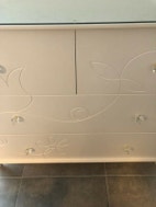 Kommode, Ilva, Rigtig fin kommode med 4 skuffer (2 store og 2 små) skufferne er rigtig rummelige til tøj eller legetøj. Fint mønster og greb.
