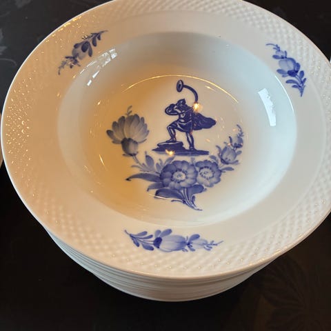 Royal Copenhagen riflet dyb tallerken i hotelporcelæn/jernporcelæn med klassisk blå-hvid dekoration.