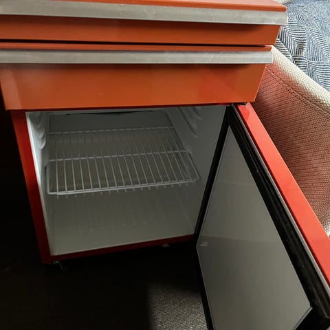 Lille funktionelt køleskab med lille fryse,som fejler ikke noget , ingen rust eller bul, ku 14 måneder brugt dB 39, mål 55x60x84, husk lammer ikke som andre (db37)