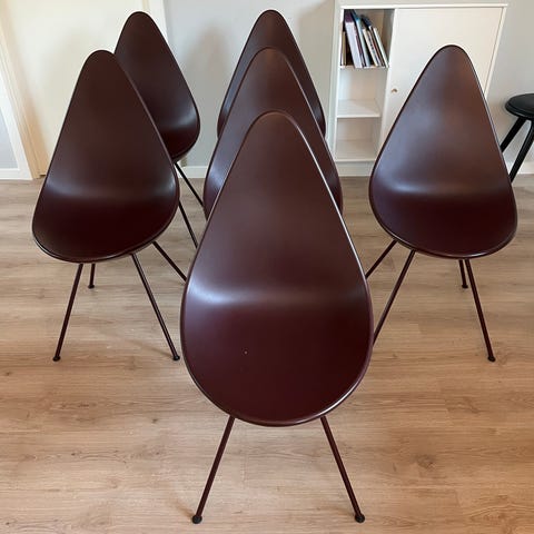 Arne Jacobsen dråben stol i rød med hynde.
