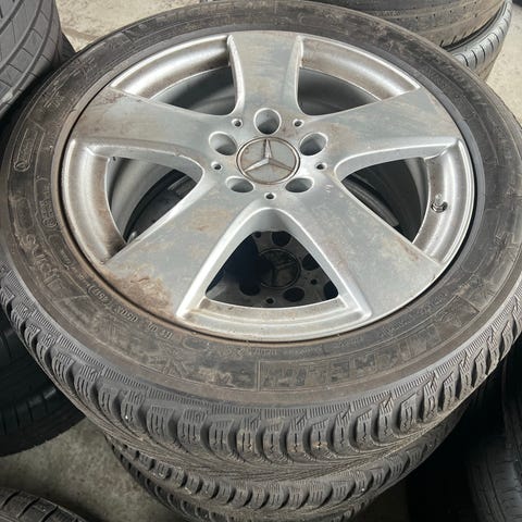 Mercedes Benz Alufælge med Continental contact vinterdæk( har kørt 2000 km og er som ny),som også passer til Audi A3,4,5 og BMW, fejler ikke noget ( undtaget små ubetydelig kant riser )og klar til at montere på købt pris 7900 kr sælges for kun