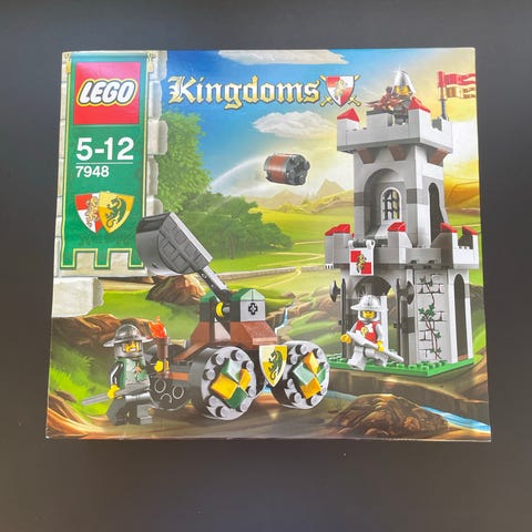Uåbnet LEGO Kingdoms 7950 byggesæt. Sættet tilhører LEGO-temaet Kingdoms med middelalderligt riddertema. Indeholder klodser til opbygning af en mindre belejringsscene med katapult samt minifigurer og tilbehør som vist på æsken. Egnet til børn i alderen 5-12 år ifølge emballagen.