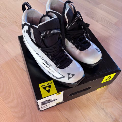 Fischer Profoil skistøvler med SNS-sål. Modellen er grå med røde snørebånd og højt skaft for støtte omkring anklen. Velegnet til langrendsski med SNS-bindinger. Materiale og præcis størrelse fremgår ikke af billederne. Str. 38.
