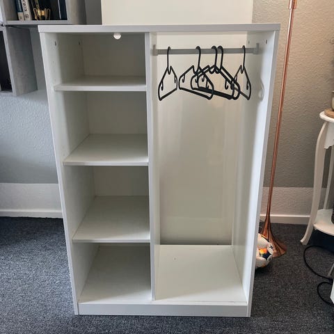Hvid garderobeskab med 4 låger hylder og bøjlestang