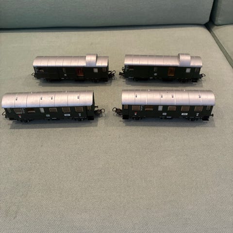 Lima modeltog passagervogne i H0-skala. 4 stk. vinrød farve. Sættet omfatter flere passagervogne fra Lima i vinrød farve , alle leveret i originale æsker. Vognene er egnet til modeljernbaneanlæg i H0-skala og kan anvendes som personvogne . Velegnet til samlere og til udbygning af eksisterende H0-modeltogbaner med ekstra passagervogne. Pris pr. stk. 100 kr., 4 stk. 375 kr. Kan afhentes i postnummer 4070, alternativt sendes på købers regning.
